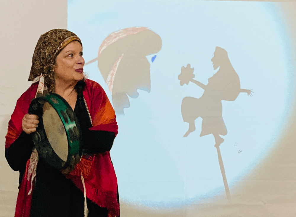 The piece began with Litwak entering as Miriam and describing a girl called Shemie who is about to jump off a bridge after the death of her grandmother. Miriam then called on “the world of shadow” as Shemie’s struggle was projected through shadow puppetry on a screen. Litwak’s use of poetic language was engaging, with her calling on the female ancestors for strength, telling us, “Let this be medicine”.