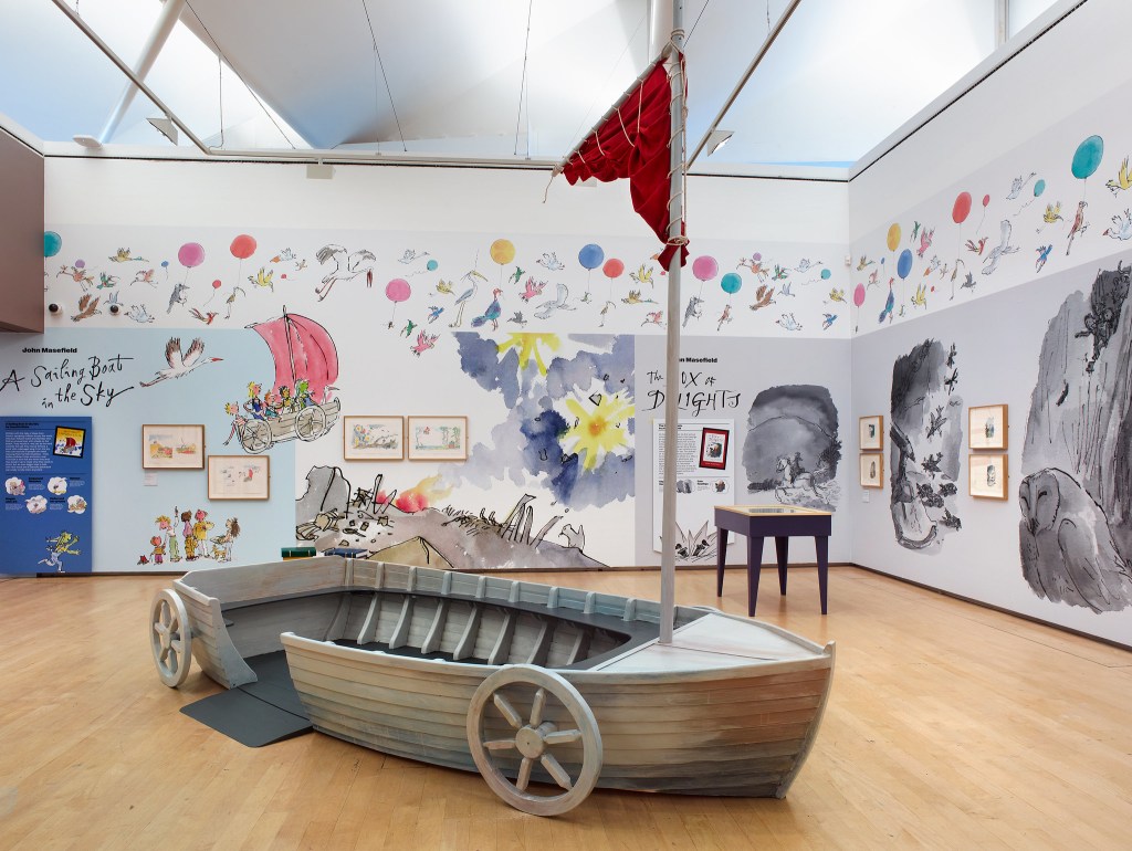 Quentin’s scratchy inks and vivid colours feel especially poignant in a space like this, where children can experiment more freely and put their creativity to the test, while adults can enjoy illustrations from the books they grew up with in such an intimate and up-close setting.