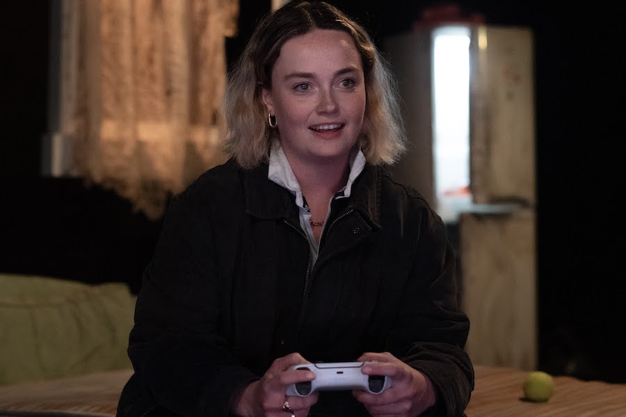 Lucy Eve Mann as Jennifer is a breath of fresh air, bringing the sunshine needed in the brothers’ dark lives. Sickly sweet at first, Mann soon settles into Jennifer, offering a gentle presence that softens the world around the boys. As the literal mother figure, Vicky Binns’ Maggie is erratic, drifting in and out of her sons’ lives, crying out when they fail to appreciate her incompetent parenting. Binns throws herself into the role, pouring a huge amount of emotion and energy into her craft. This contrast between mother figures underlines the play’s central truth: the importance of love in shaping childhoods. The brothers thrive in Jennifer’s presence and unravel under Maggie’s influence; yet ultimately, the dominance of violent videogames and isolating environments takes precedence. Love cannot always prevail, and the play closes in sexual violence and heartbreak.