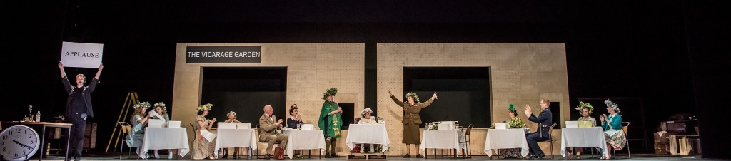 McDonald introduces various metatheatrical devices, such as a stage manager who flashes “applause” signs to cue the audience after Lady Billows’s speech, and moments when singers perform from within the auditorium rather than on stage. These choices are meant to blur the boundary between performance and spectatorship, but they add little insight. They feel more like playful interruptions inserted to keep things lively, rather than extensions of a coherent vision. The fourth wall is broken repeatedly, though not purposefully enough to justify the intrusion. The pacing also suffers: what should feel brisk and sparkling sometimes sags under the weight of its own cleverness. There are moments of charm and spontaneity, but they struggle against the production’s uneven rhythm and patchy tone.