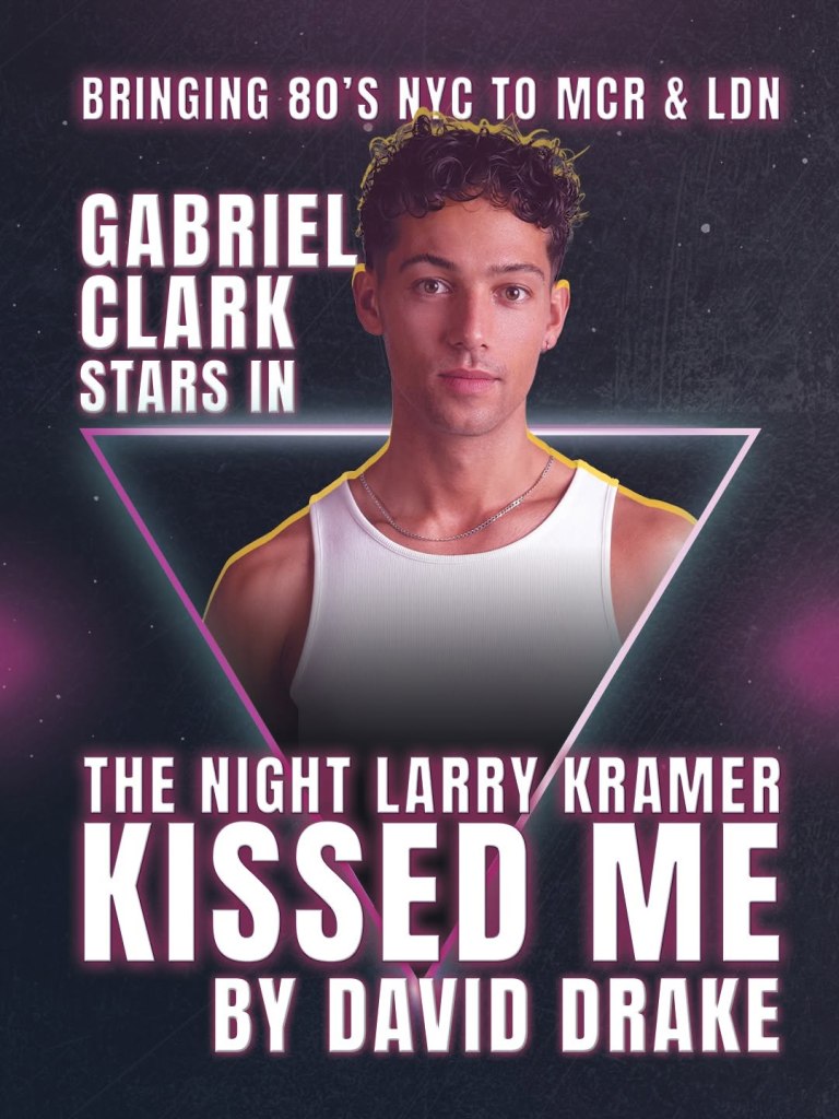 Gabriel is currently starring in David Drake’s semi-autobiographical, one-man show, The Night Larry Kramer Kissed Me. Produced by Hive North and directed by Adam Zane, who also directed (and wrote) Jock Night, its run at Hope Mill Theatre was the play’s first Manchester staging in more than three decades. It is presented as part of LGBT History Month. We gave the show a glowing review – whilst we had a few small critiques of the text, one cannot possibly fault this specific production; the direction, design and, of course, performance are all exceptional.